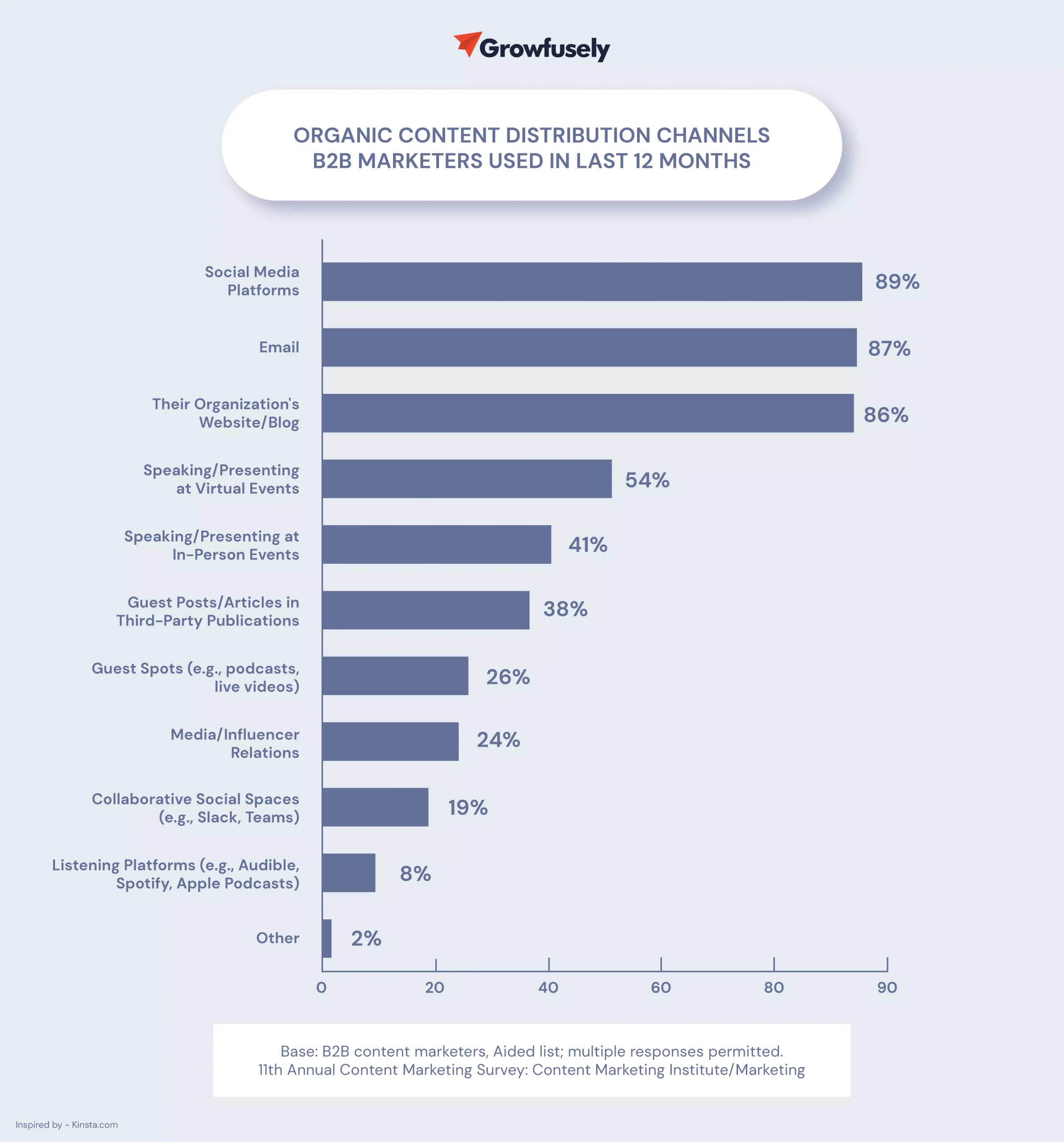 However, it looks less likely that they are only counting on white papers to attract and nurture leads. In fact, you can see most B2B firms focusing on formats like infographics, listicles, blog posts, and podcasts.