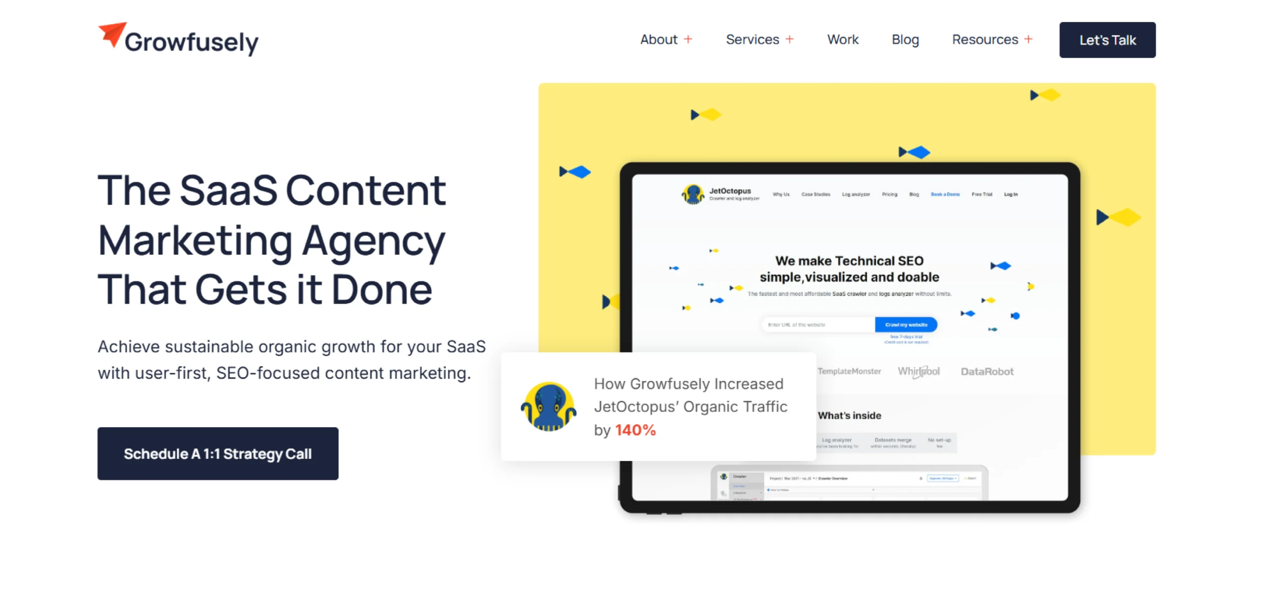 Growfusely primarily provides SEO and content marketing services to SaaS companies.