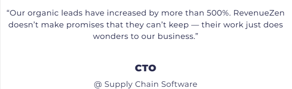 You can check out some of the best B2B SEO case studies by RevenueZen for its clients on this page.