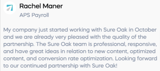 Sure Oak is a full-service SEO agency at its core helping companies from various industries achieve their marketing objectives. The primary goal Sure Oak accomplishes for its clients is driving revenue and growth through organic traffic and strategies.