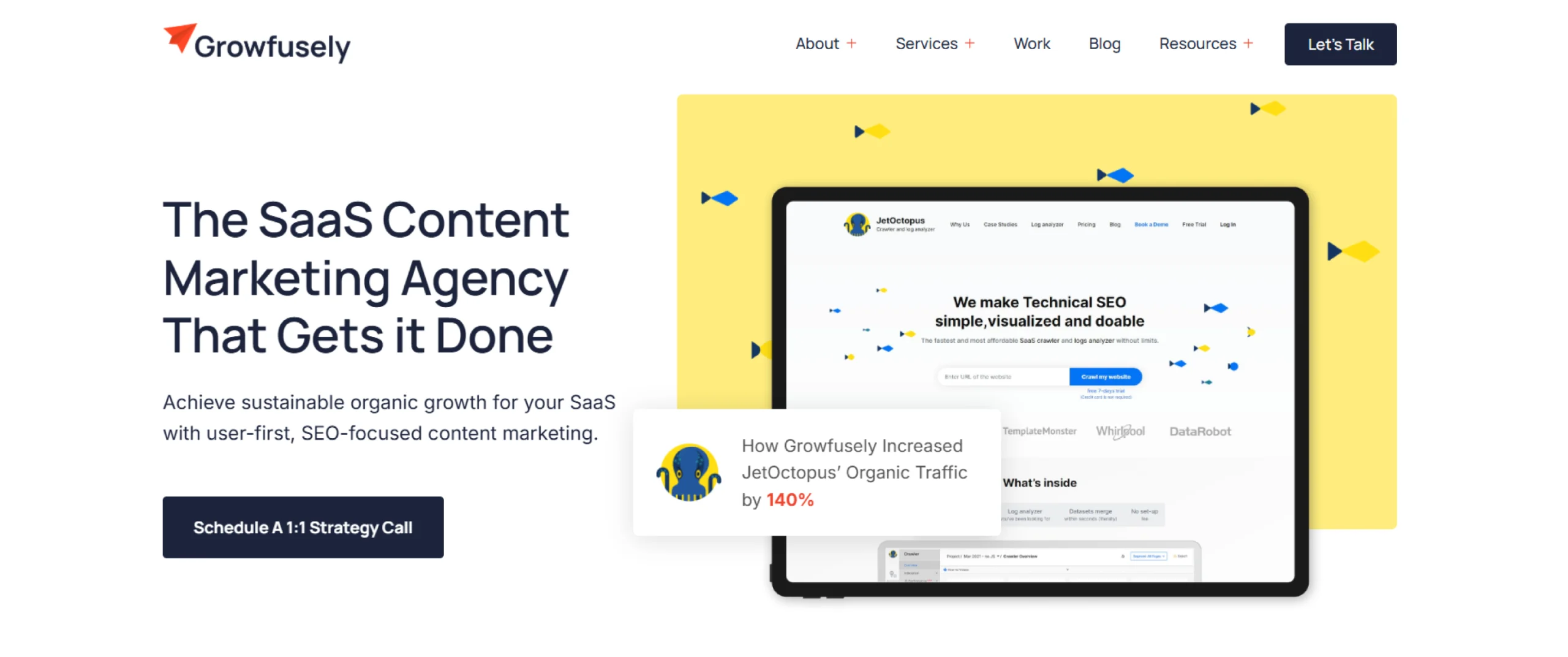 Growfusely primarily offers SEO and content-related services to companies from the SaaS industry.