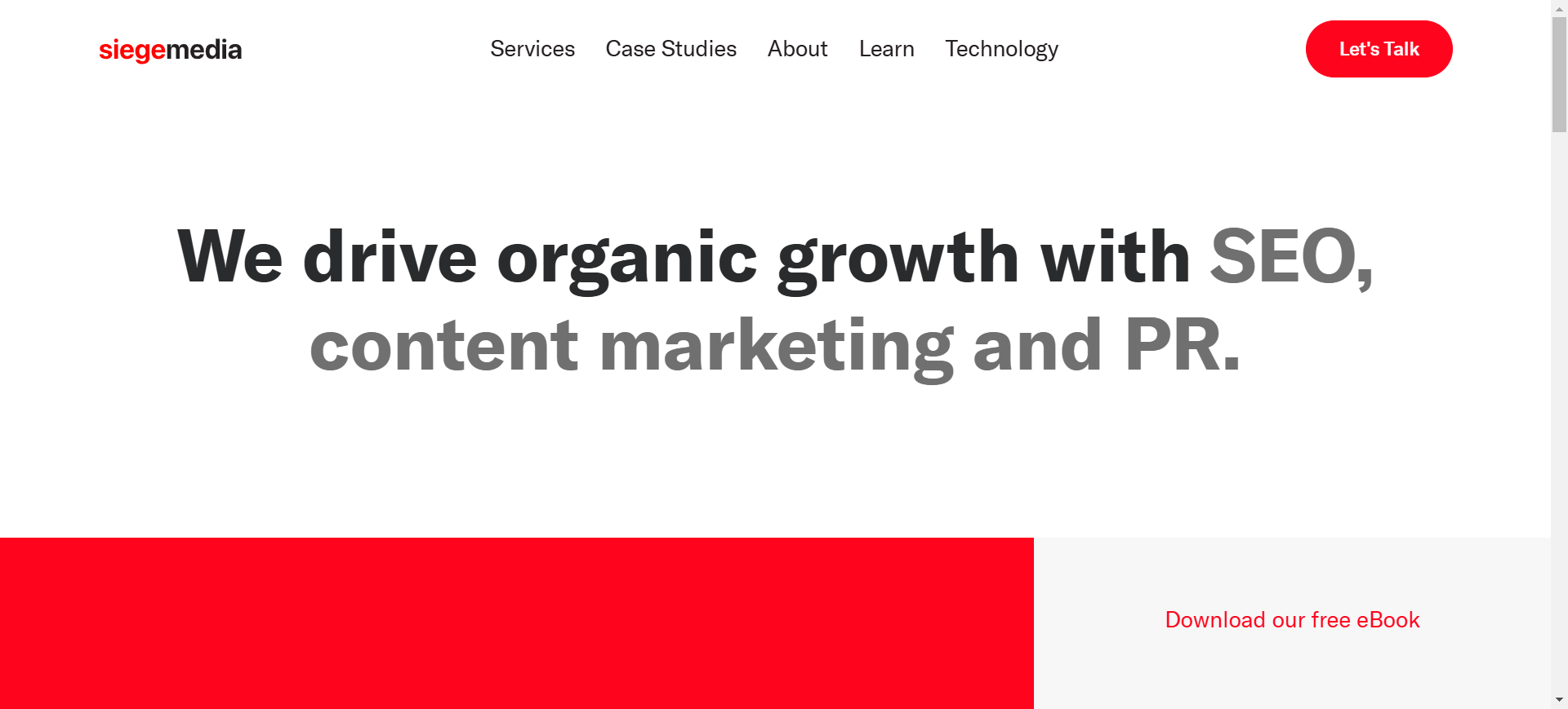 Siege Media is a full-service SEO agency catering to companies that want to generate desired results and achieve revenue and growth goals. The agency provides link-building, content, and SEO services to help businesses boost their performance over time and improve their organic traffic and search rankings.