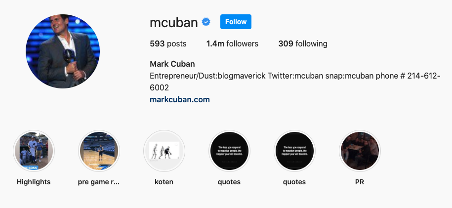 Take a look at Mark Cuban’s Instagram profile. The serious face of Shark Tank has fun while engaging his Instagram followers, giving them a peek into his family life and behind-the-scenes of Shark Tank and his own business ventures.