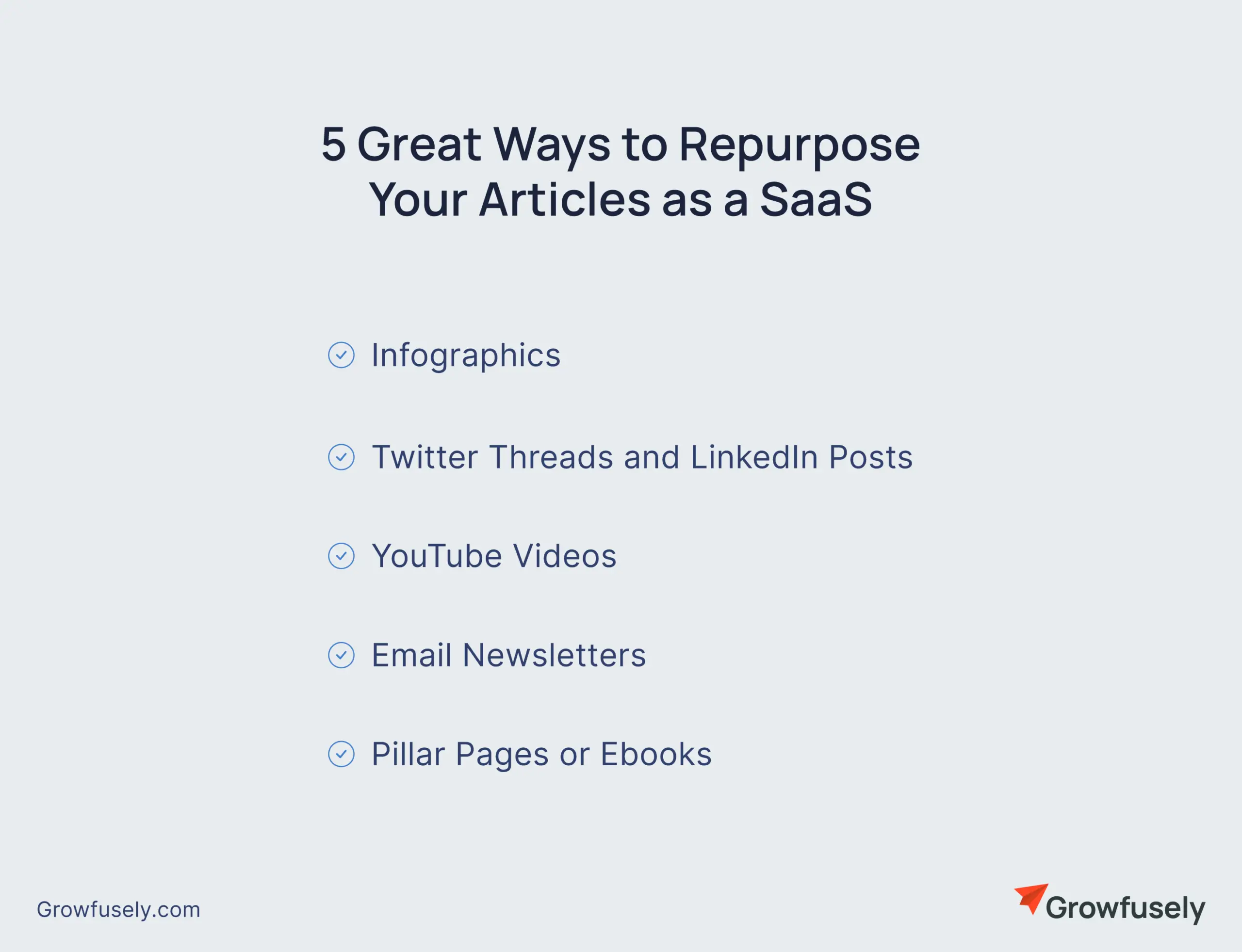 - Infographics, videos, and newsletters are some impactful ways to repurpose your articles.