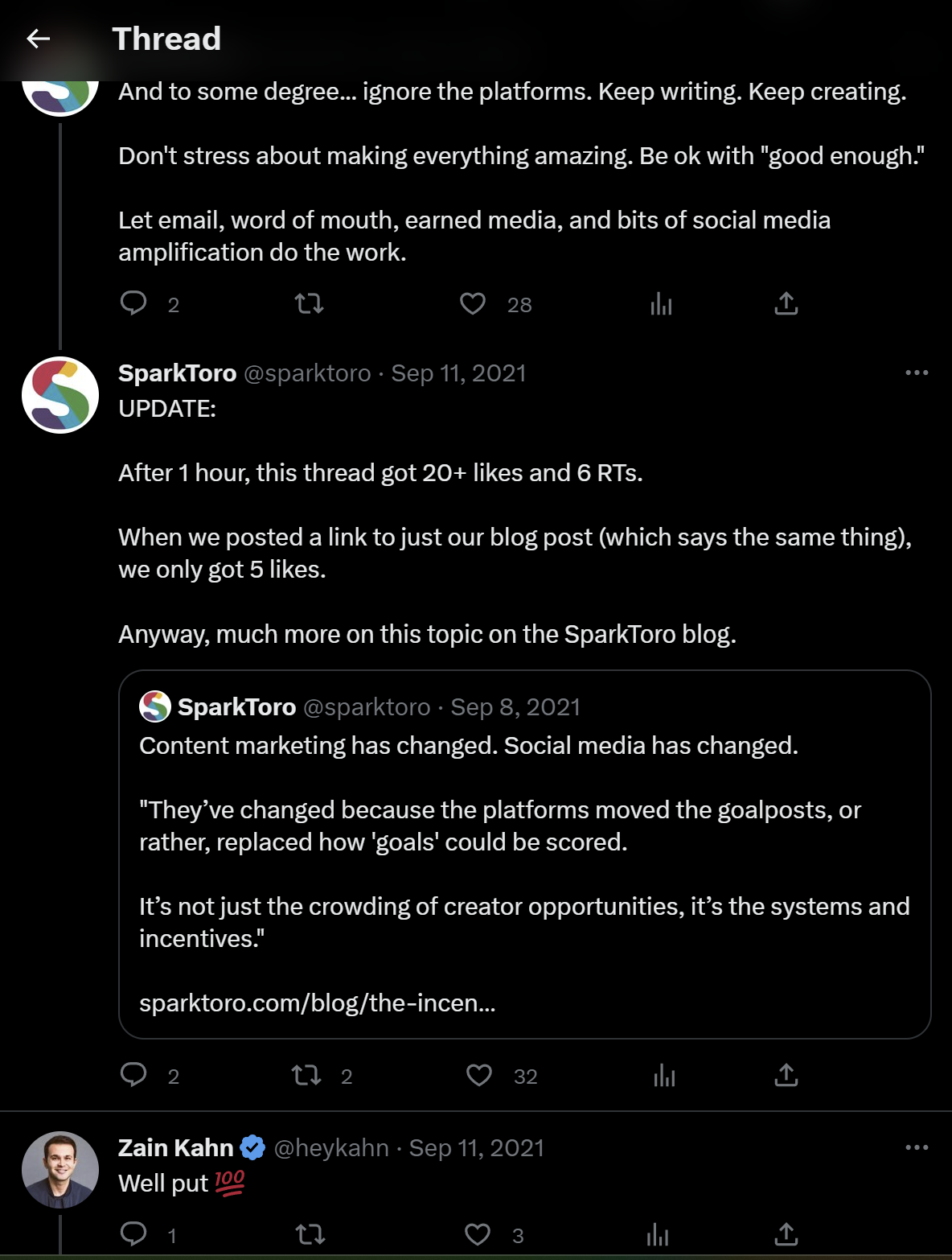 They go on to mention how effective the thread was and a CTA to their blog post: