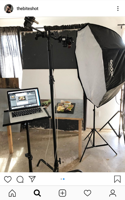 Example: The owner of the Instagram account thebiteshot is a commercial food photographer who regularly shares detailed posts on how she gets impeccable shots of food.