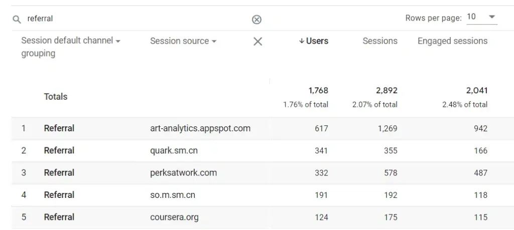 Analyzing the referrals report will show you where the referral traffic is coming from. Review the report and take note of the referral websites to check if they are resulting from your link building efforts. As referral traffic consists of visitors who arrive from relevant content pieces and are interested in checking out your business, it’s easier to convert this traffic into sign-ups.