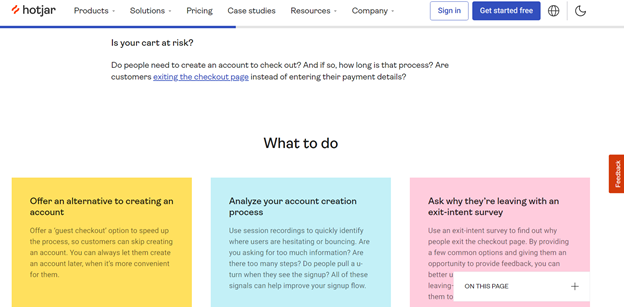 The fixes naturally include things like using heatmaps, exit-intent surveys, and session recordings — Hotjar’s key product offerings.