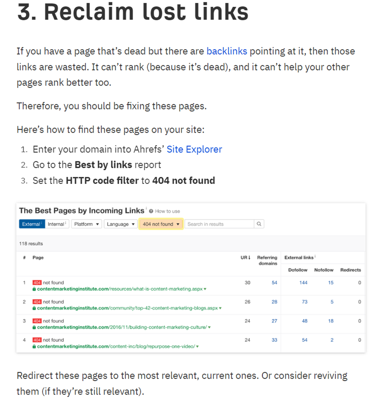 The article never explicitly says that Ahrefs offers the best or the only tool for the job, but it smoothly intertwines Ahrefs as a neat solution (and how to use it) to achieve the outcomes. And that’s been their approach to blog articles since inception.