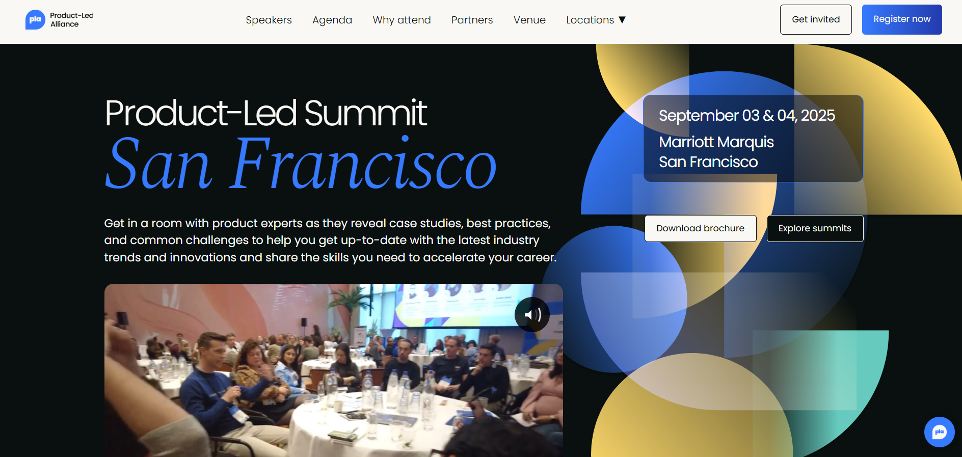 The Product-led Summit will be held at the Marriott Marquis in San Francisco, gathering over 200 senior decision-makers from leading companies like Microsoft, PayPal, and Amazon. This event features 30+ speakers and is designed for companies with substantial revenues, primarily those generating $50M+ annually.