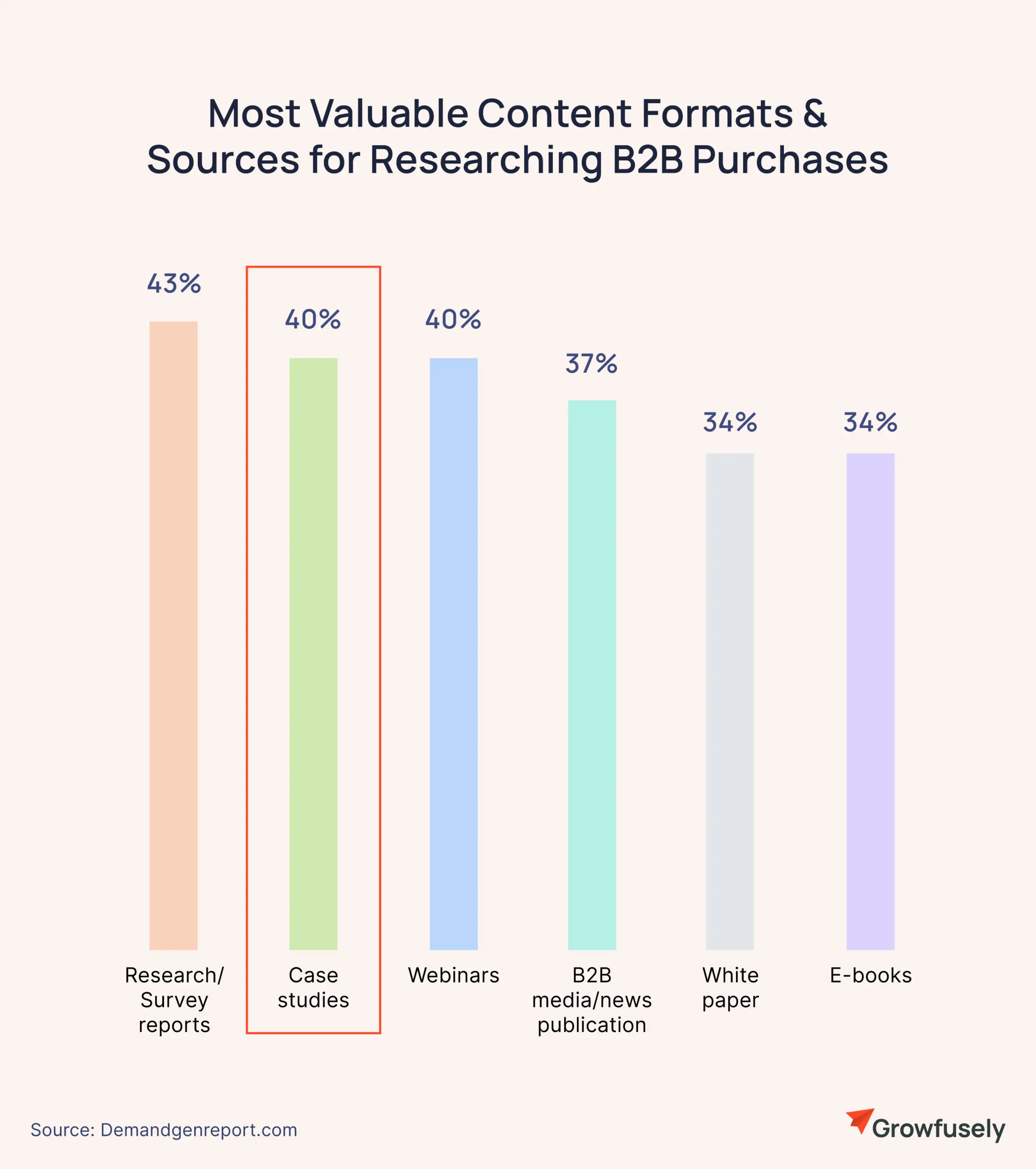 The Demand Gen Report, which I referred to earlier, also provided insights on case studies and noted that they are the second most valuable content format for researching products before purchase.