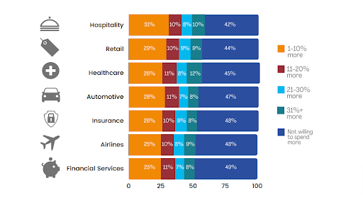 A study by Zendesk found 57% of the customers said the quality of service and experience they received from companies strongly influenced their loyalty. Another study published in 2021 on Hyken mentions that 52% of customers are willing to pay more if they receive a great customer experience and 70% would if the service was convenient. How much do you ask?