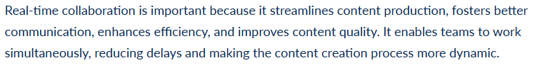 We have not only focused on the primary keyword, which is “real-time collaboration” but also on other search terms that are relevant to the topic at hand as “streamlined content production” and “content creation process”.
